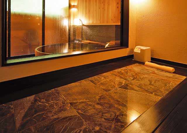 地上2階、地下には檜風呂と低温岩盤浴の癒しスペースでのんびりゆったり贅沢三昧。檜風呂は2人でもゆったり入れる広さ。岩盤の上に寝そべりながらTV もみられる充実した コテージです。